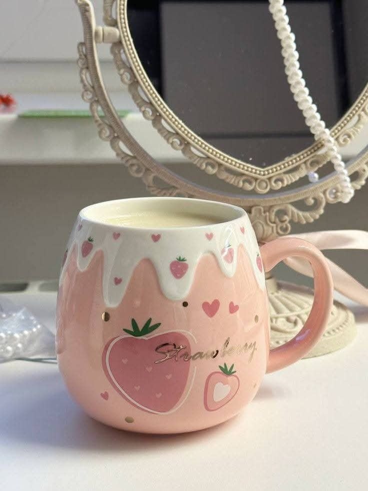 A cream-colored ceramic mug with a delicate scalloped rim, accented by a glossy pink bow detail. Elegant and feminine, perfect for enjoying coffee, tea, or hot chocolate in style.